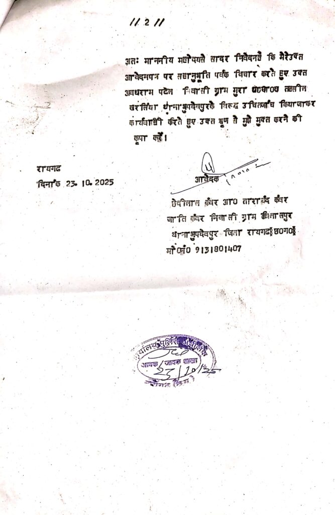 बदलता छत्तीसगढ़।रायगढ़। सूदखोर विरेन्द्र तोमर मामले की स्याही अभी ठीक ढंग सुख भी नही पाई है और रायगढ़ जिले में एक सूदखोरी का और सनसनीखेज मामला सामने आया है।सूदखोर इस बार खरसिया विधानसभा क्षेत्र का है।बड़ी बात तो यह है कि सूदखोरी का कारोबार करने वाला यह शख्स न सिर्फ कांग्रेस के बड़े नेताओं में शुमार है बल्कि पूर्व जिला पंचायत सदस्य भी है।जिसके द्वारा बिलासपुर पंचायत के आदिवासी सरपंच को निशाना बनाते हुए अपने घर मे पांच घण्टे तक बंधक बनाकर उसे शारीरिक यातनाएं देने का मामला प्रकाश में आया है। पीड़ित आदिवासी सरपंच ने इंसाफ की फरियाद लगाते हुए एसपी दिव्यांग पटेल का दरवाजा खटखटाया है।