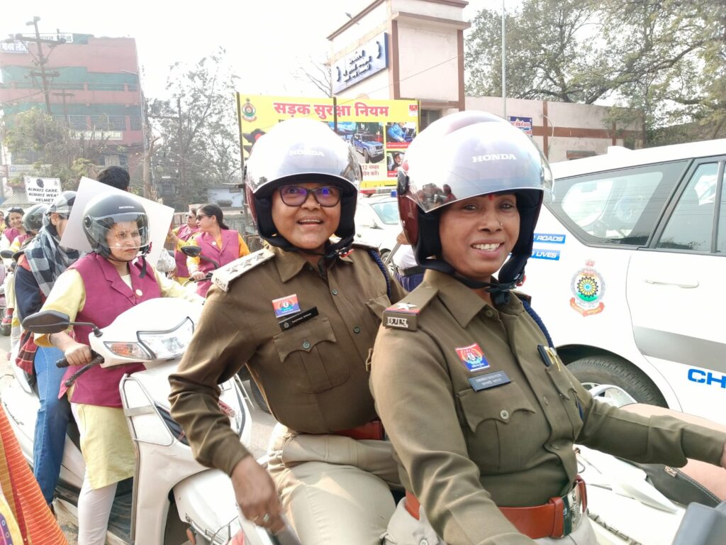 ➡️ रैली के दौरान महिला पुलिस अधिकारी-कर्मचारी, “दिव्य शक्ति रायगढ़” की सदस्याएं सहित बड़ी संख्या में नागरिक उपस्थित रहे, जिन्होंने हेलमेट लगाने व यातायात नियमों के पालन का संकल्प लिया।